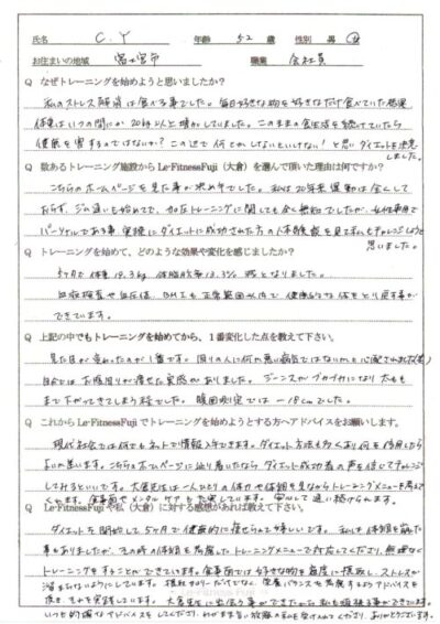 『健康的な体を取り戻すことができました』C・Yさん会社員52歳-19.3㎏