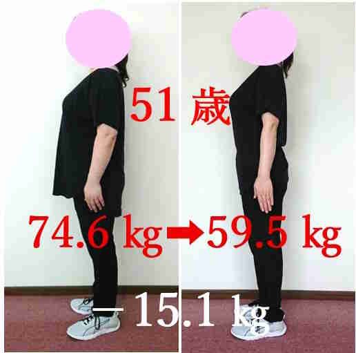 体重 74.6㎏⇒59.5㎏ -15.1㎏
